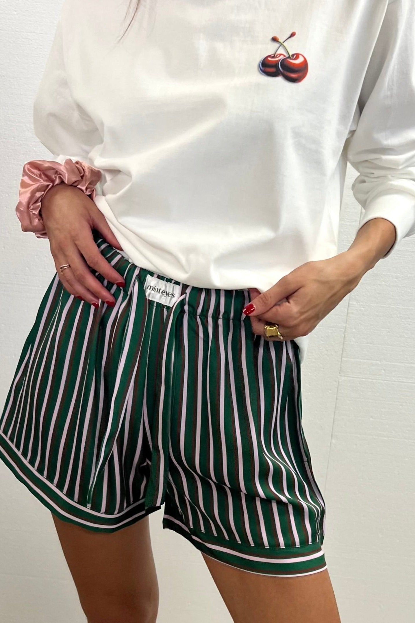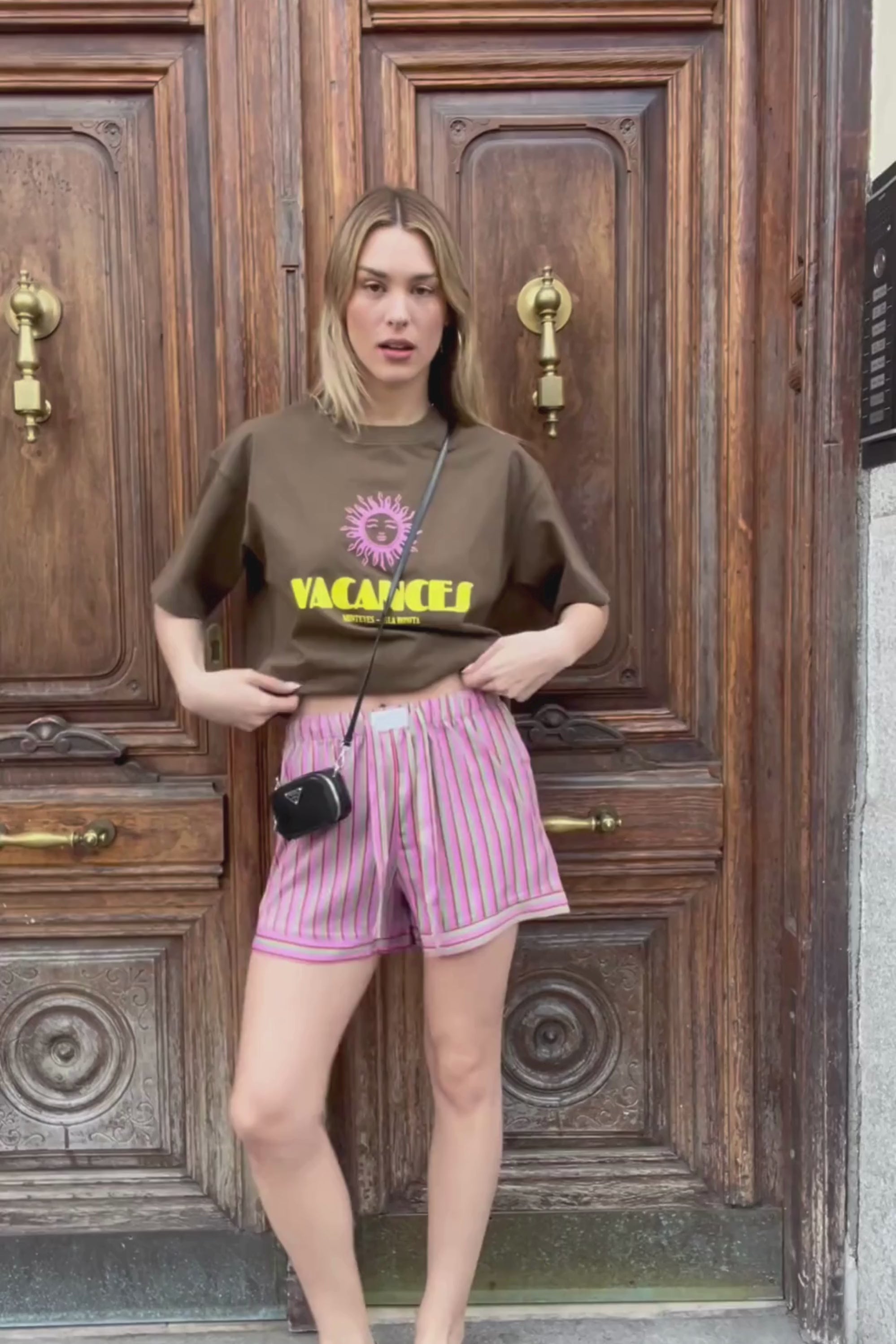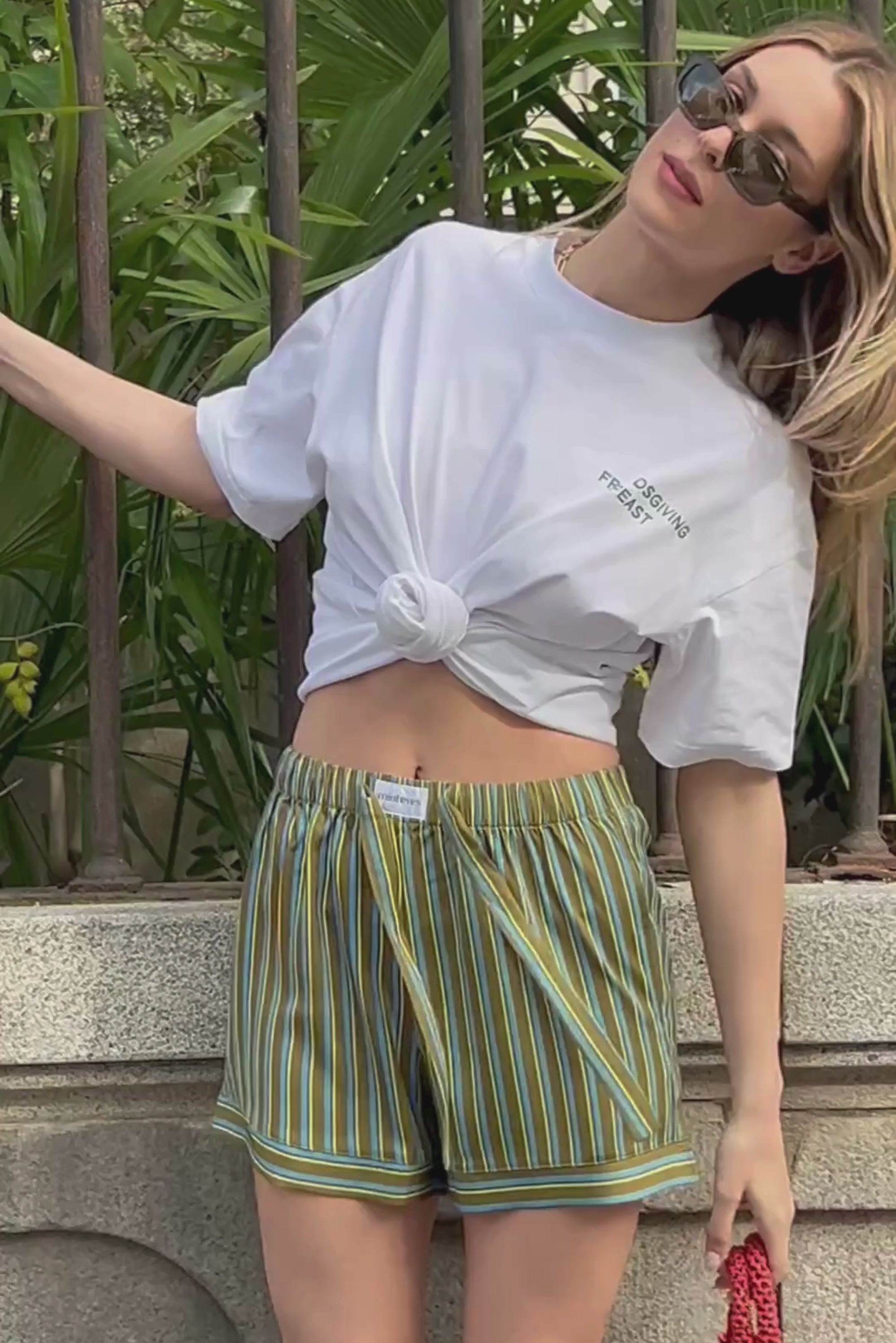 Not just pants. Trending right now. Loose-fitting satin short pants. Designed in Spain and made in with polyester and spandex.