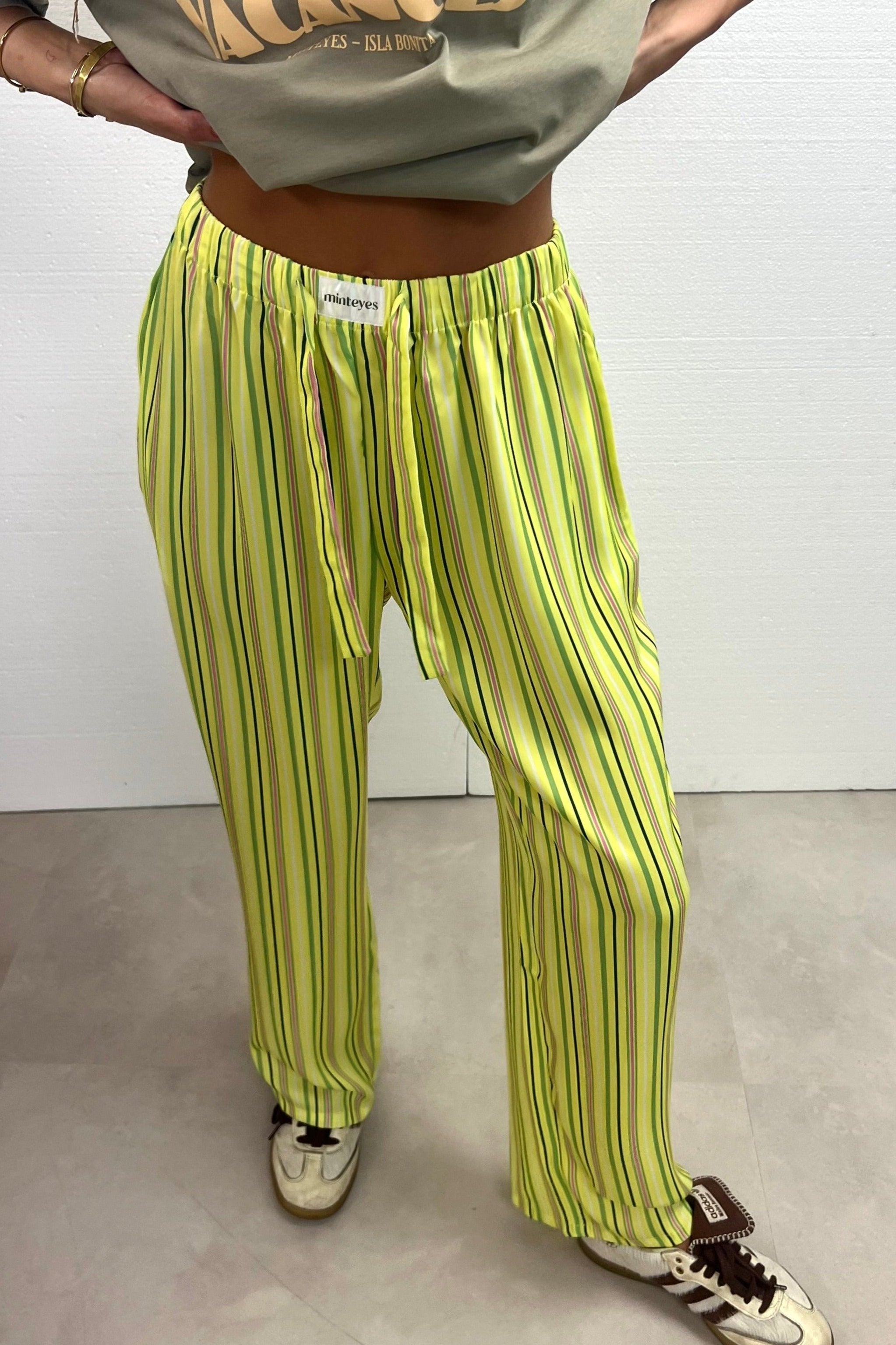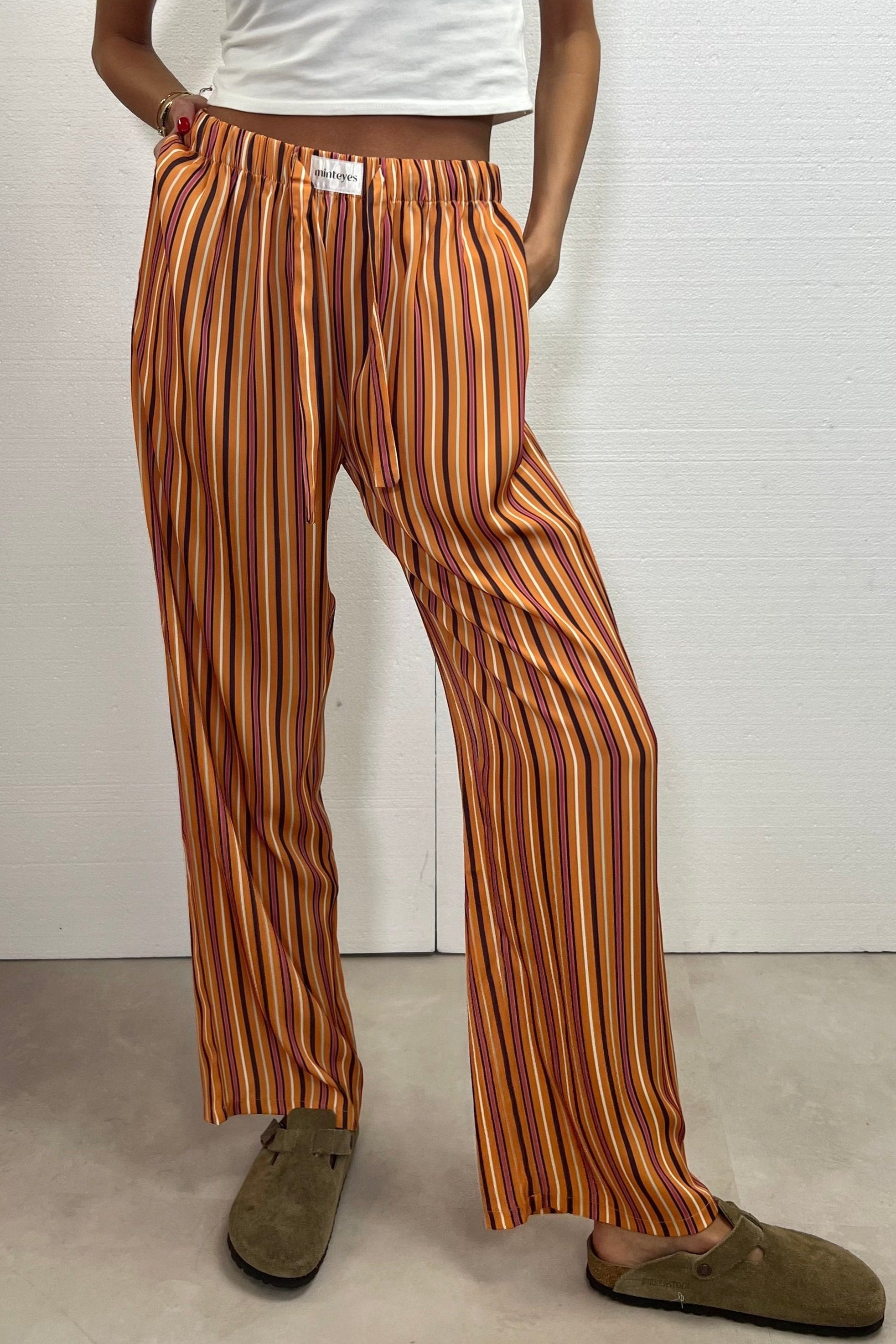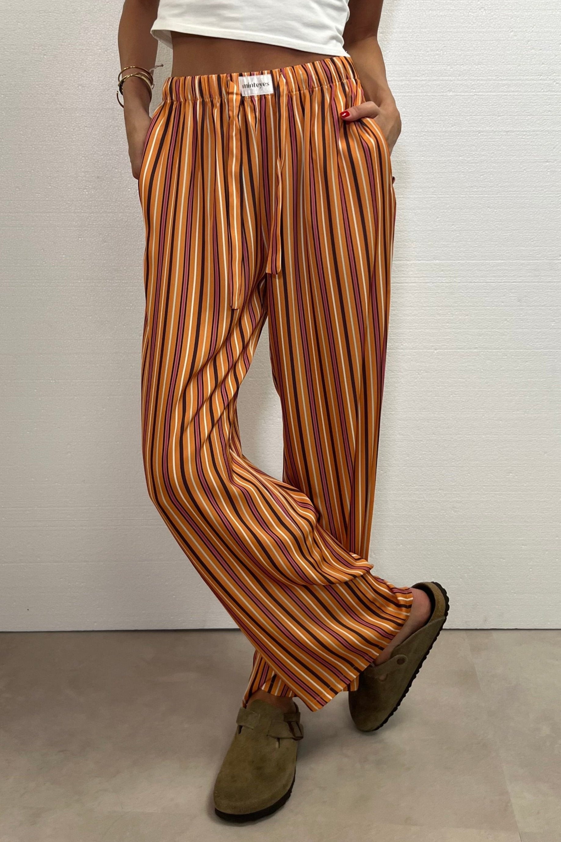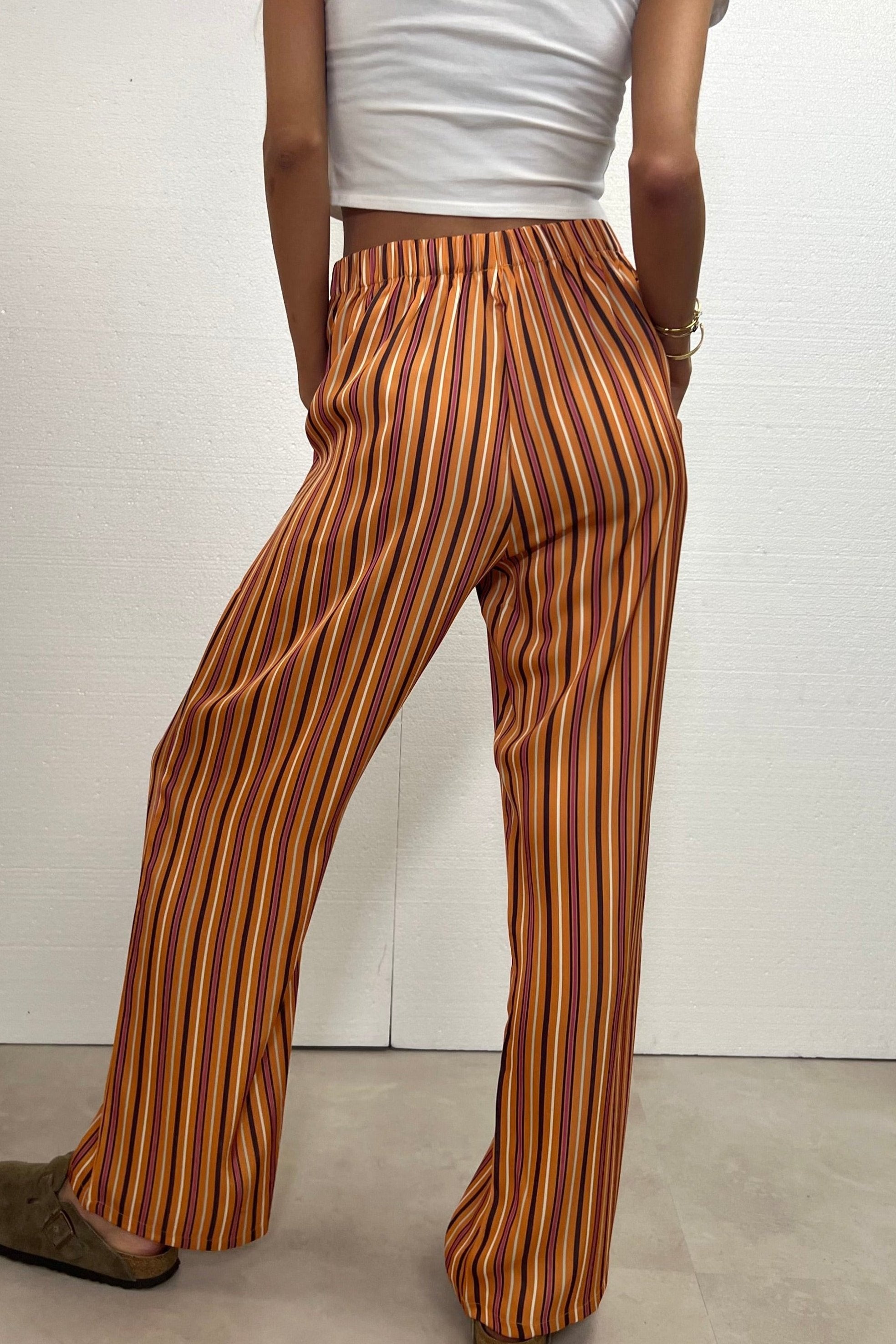 Not just pants. Trending right now. Loose-fitting satin long pants. Designed in Spain and made in with polyester and spandex.