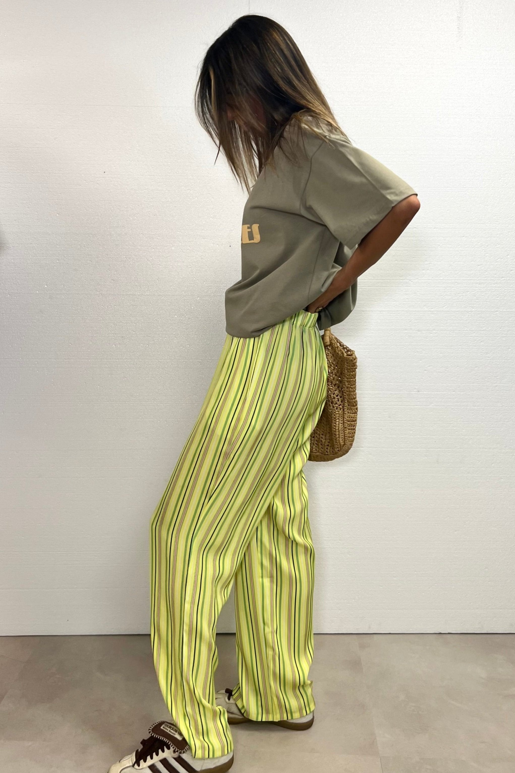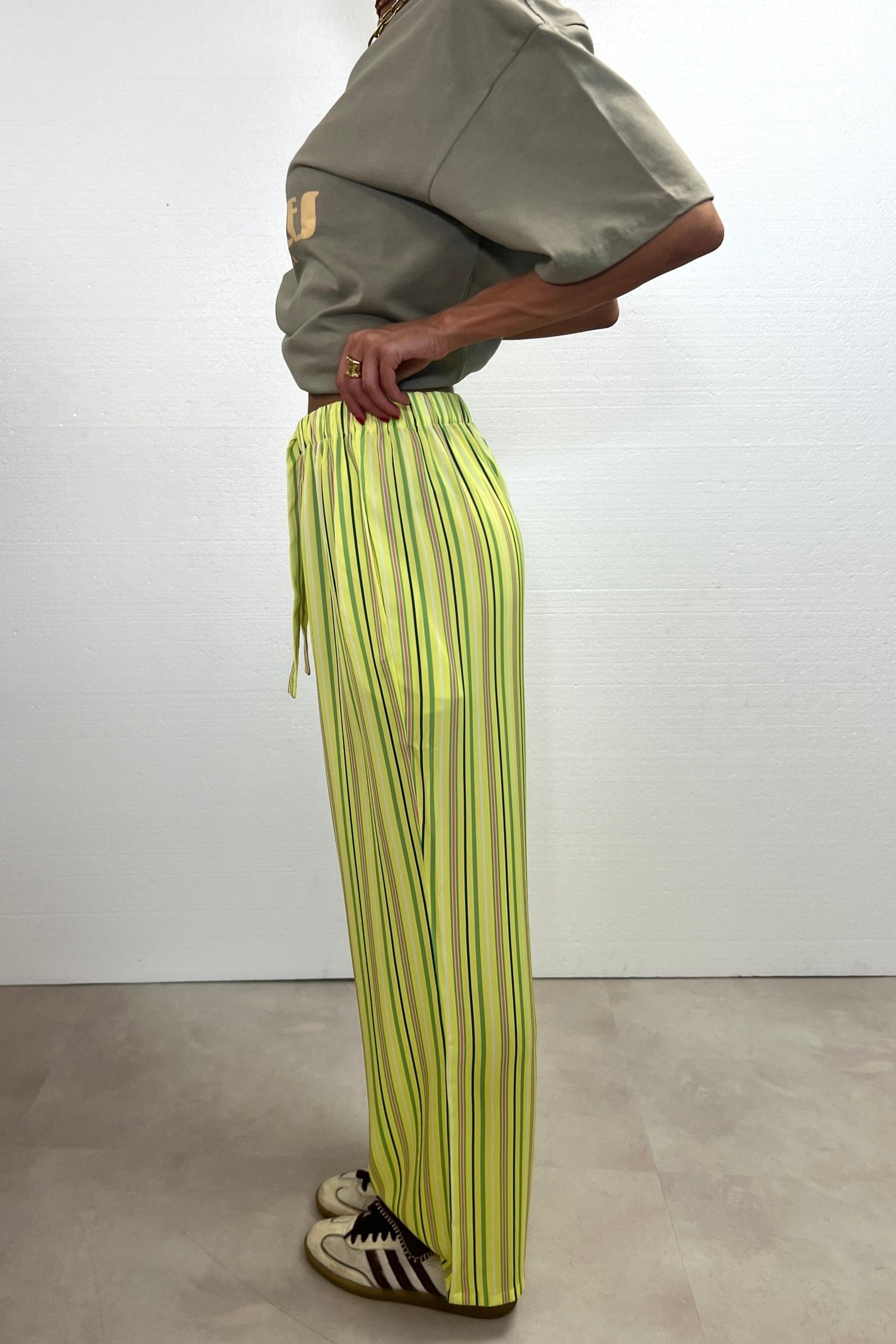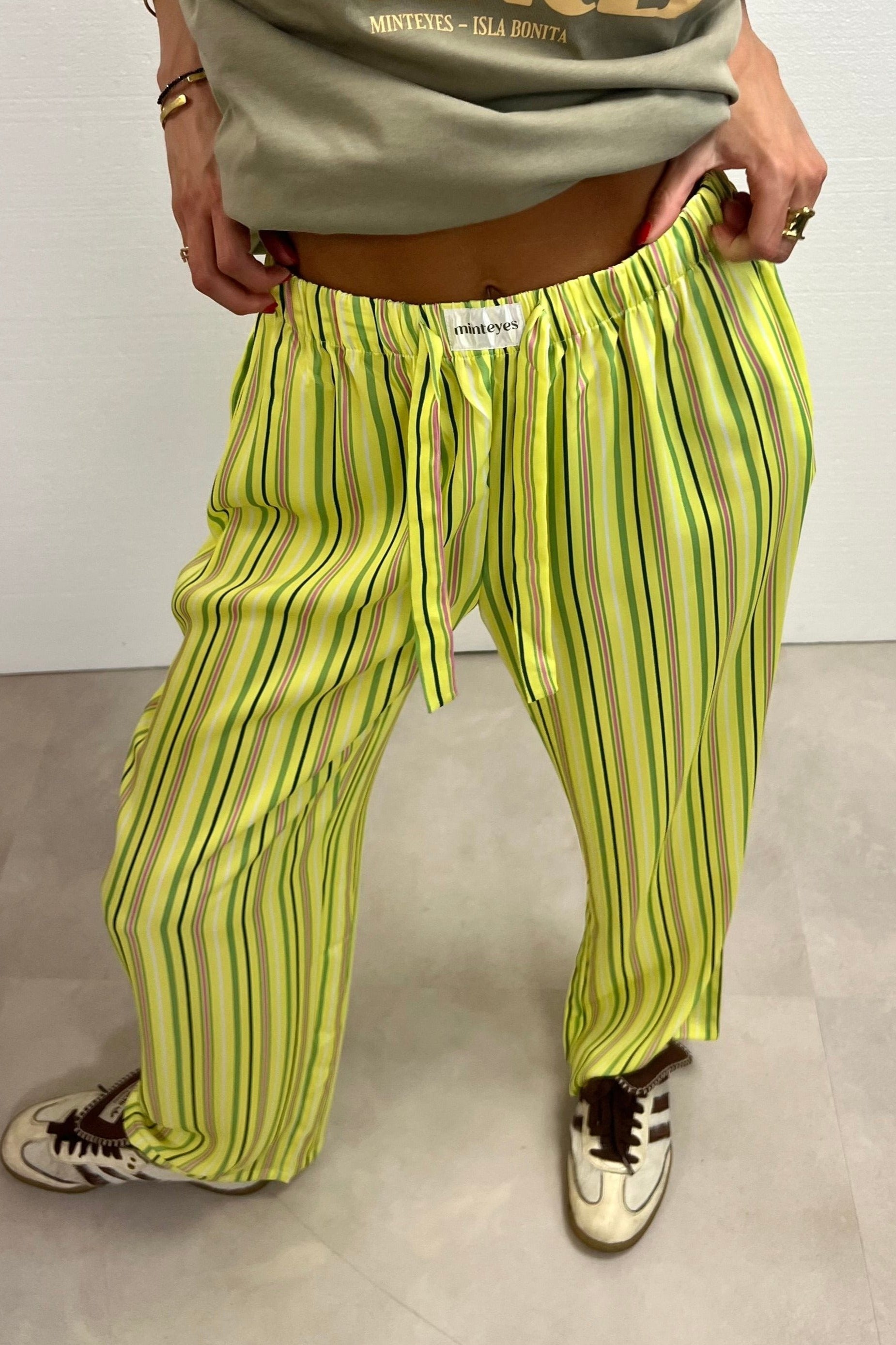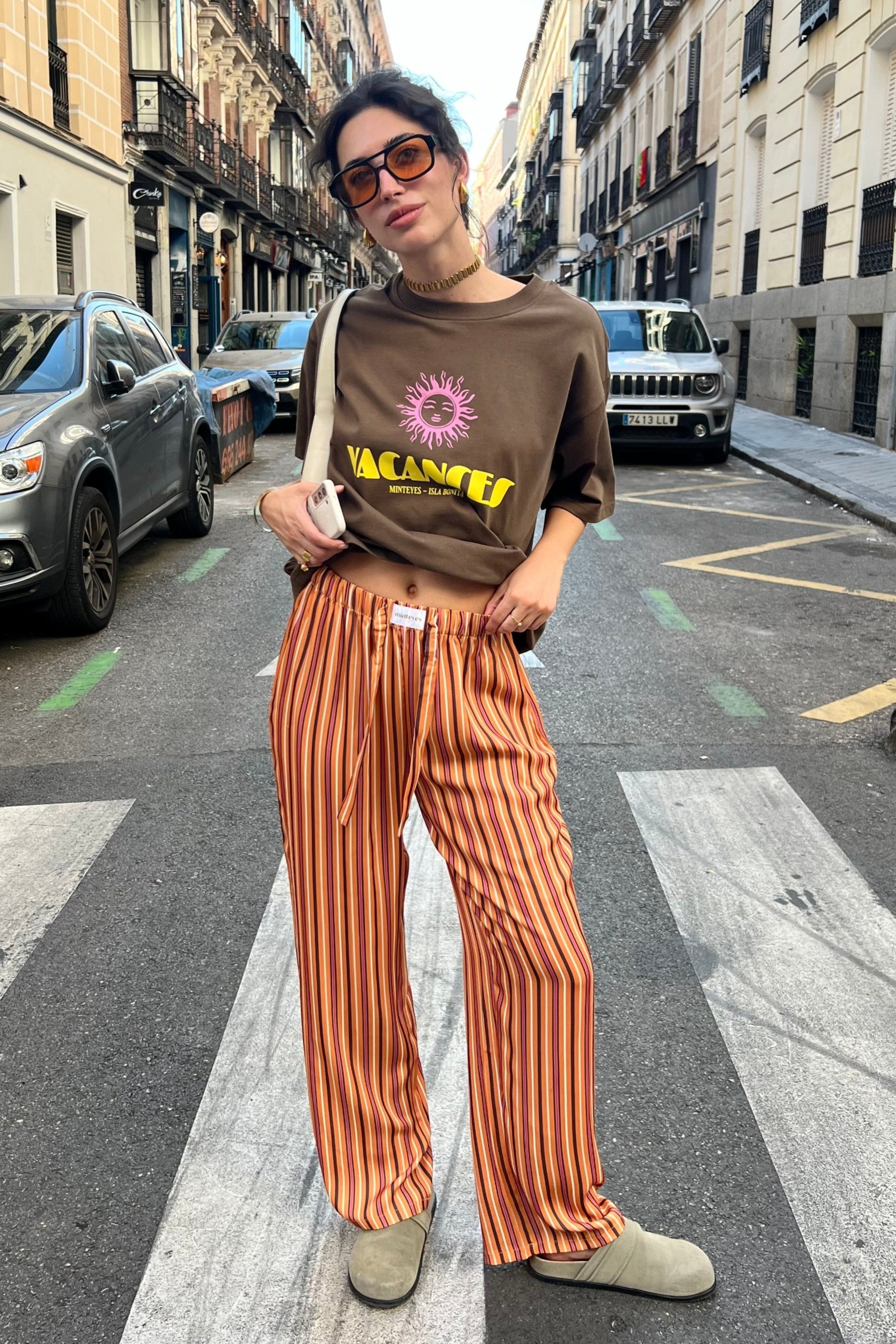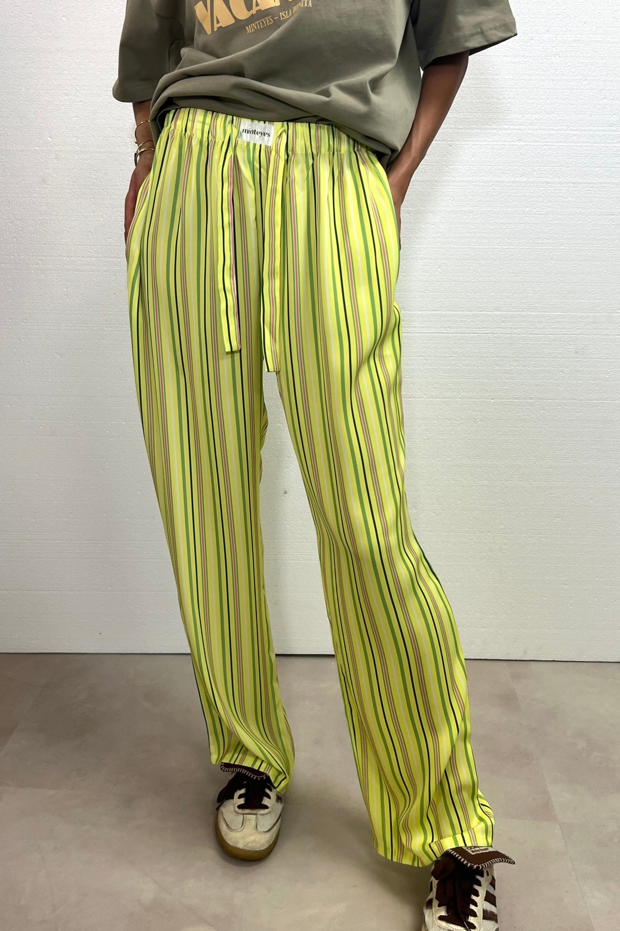 Not just pants. Trending right now. Loose-fitting satin long pants. Designed in Spain and made in with polyester and spandex.