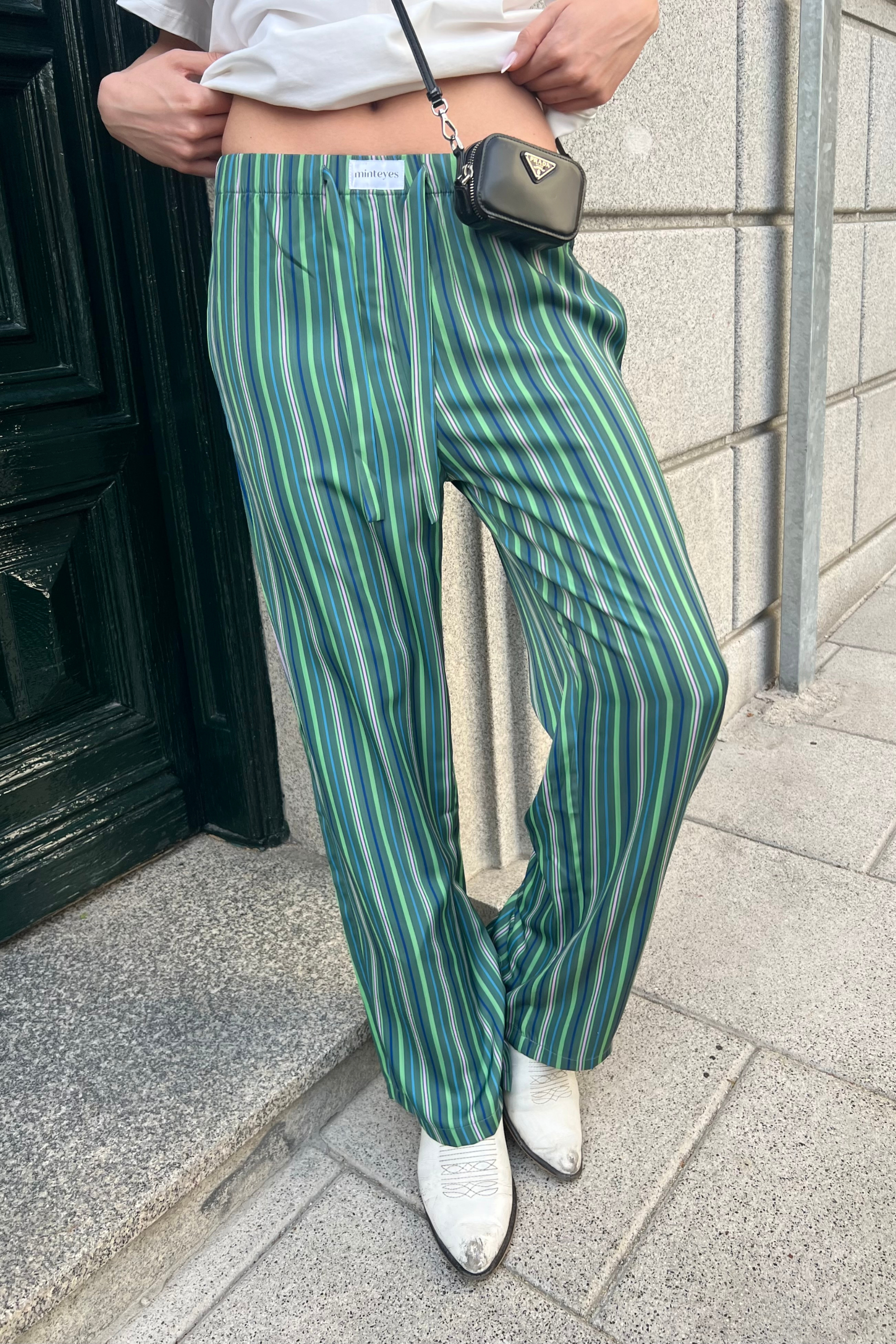 - High-waisted, with an elastic waistband and an external satin label.