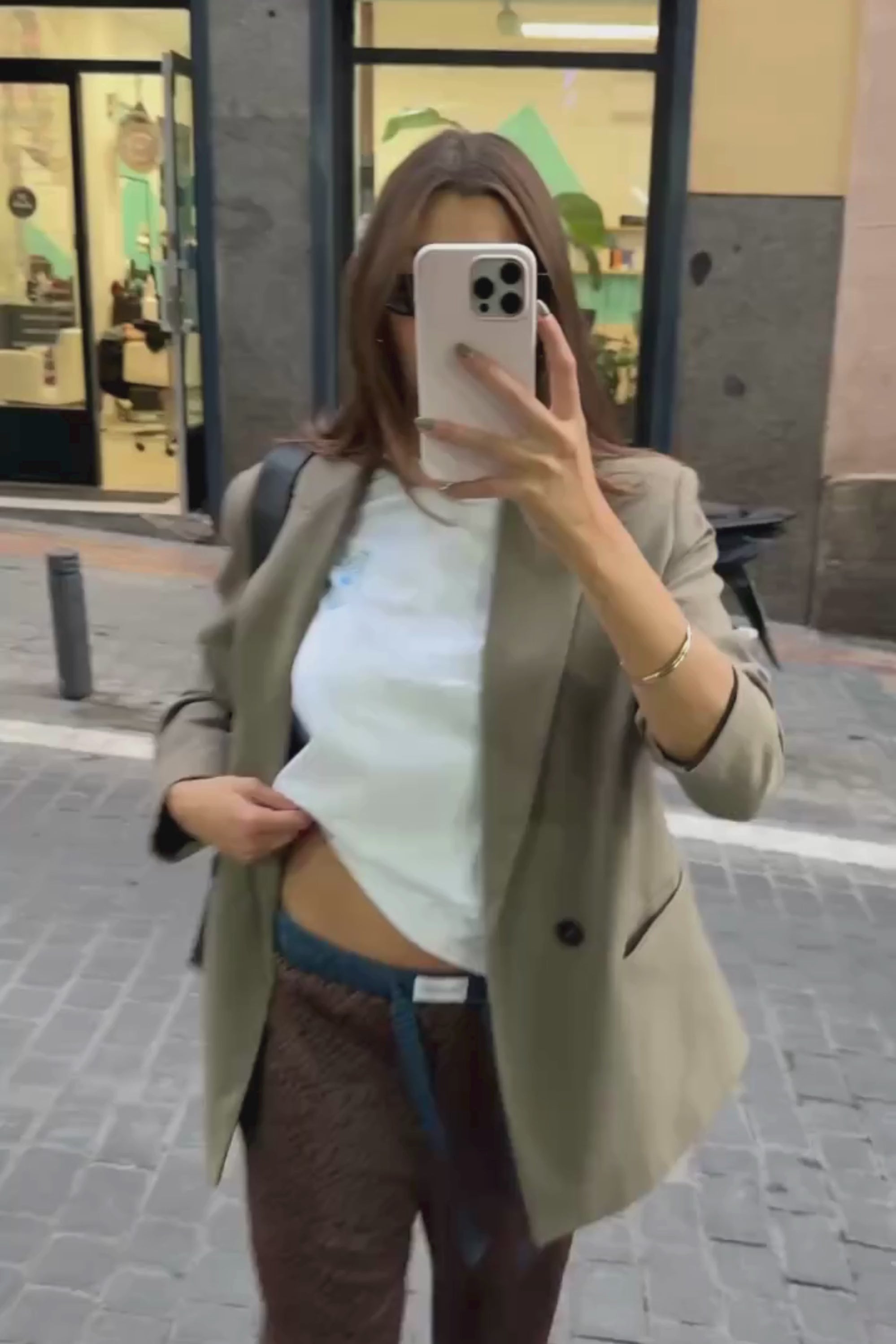 The height of the model is 1,68cm and she wears size S/M.