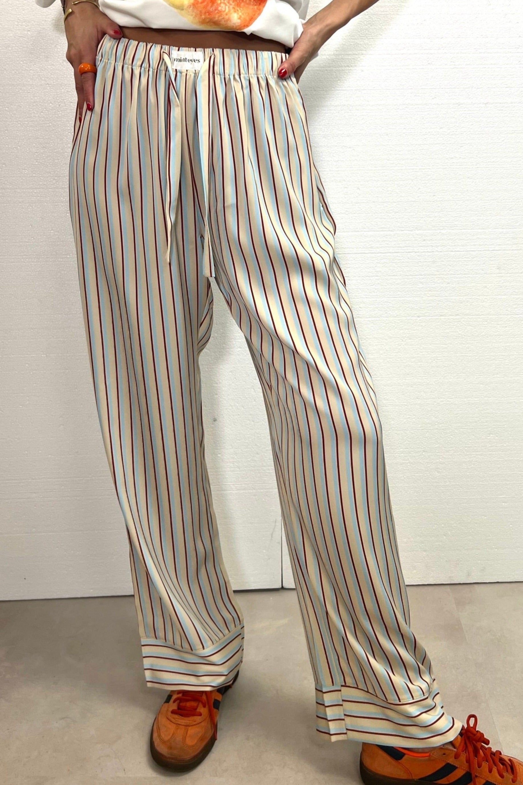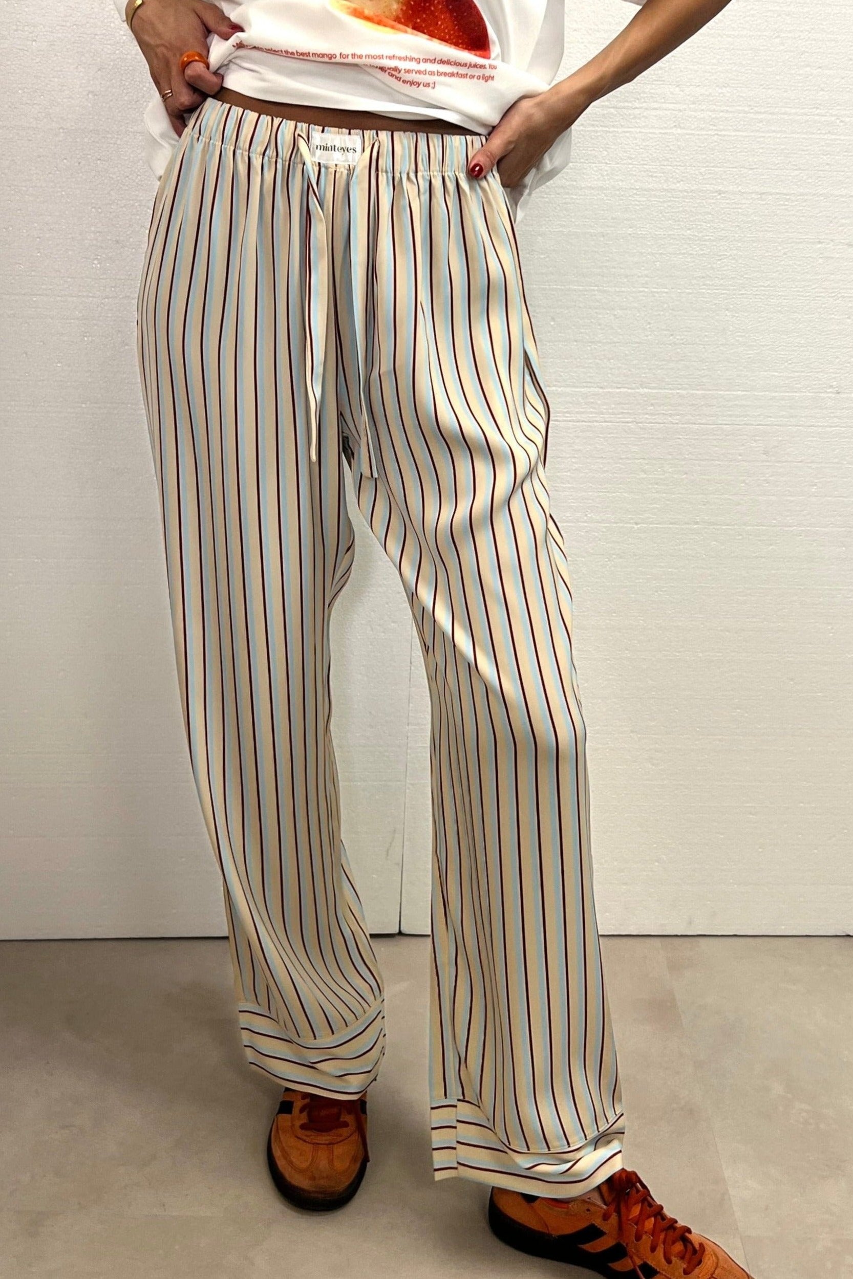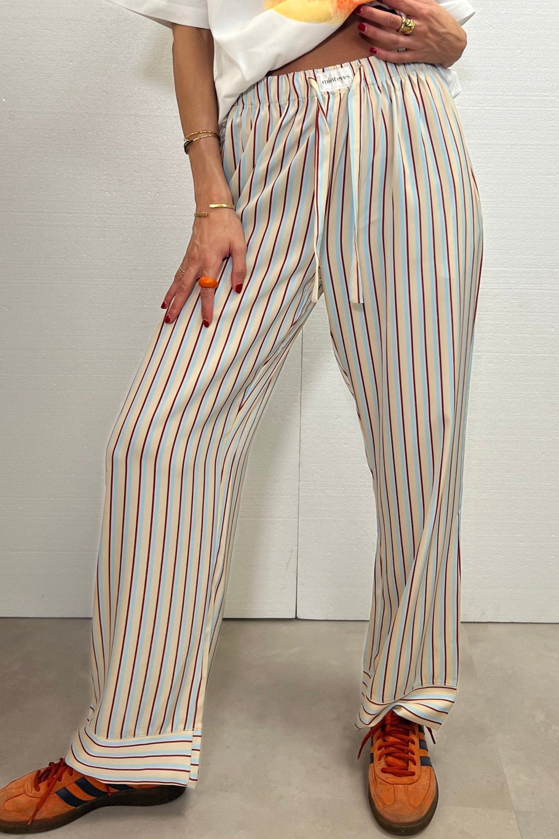 Not just pants. Trending right now. Loose-fitting satin long pants. Designed in Spain and made in with polyester and spandex.