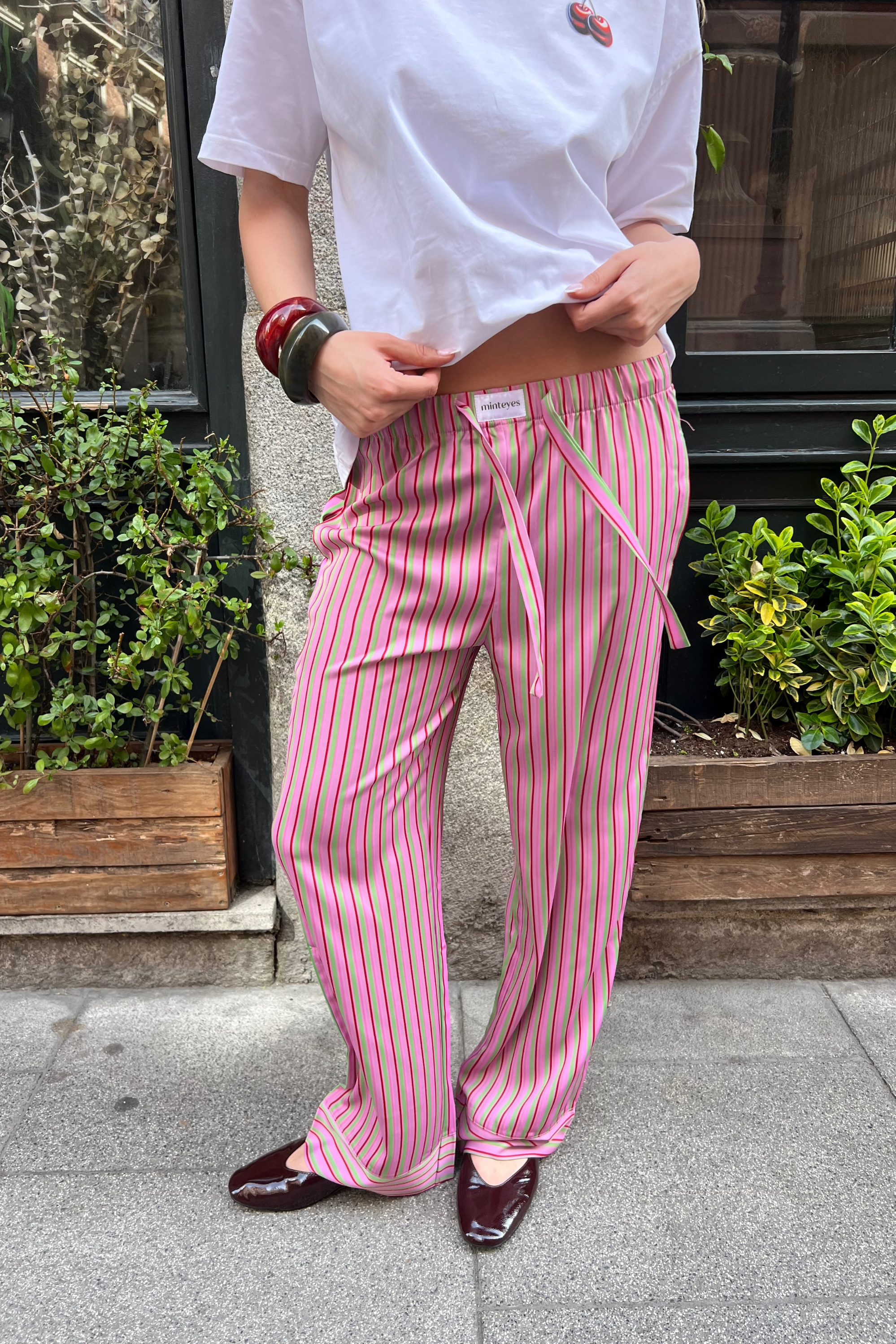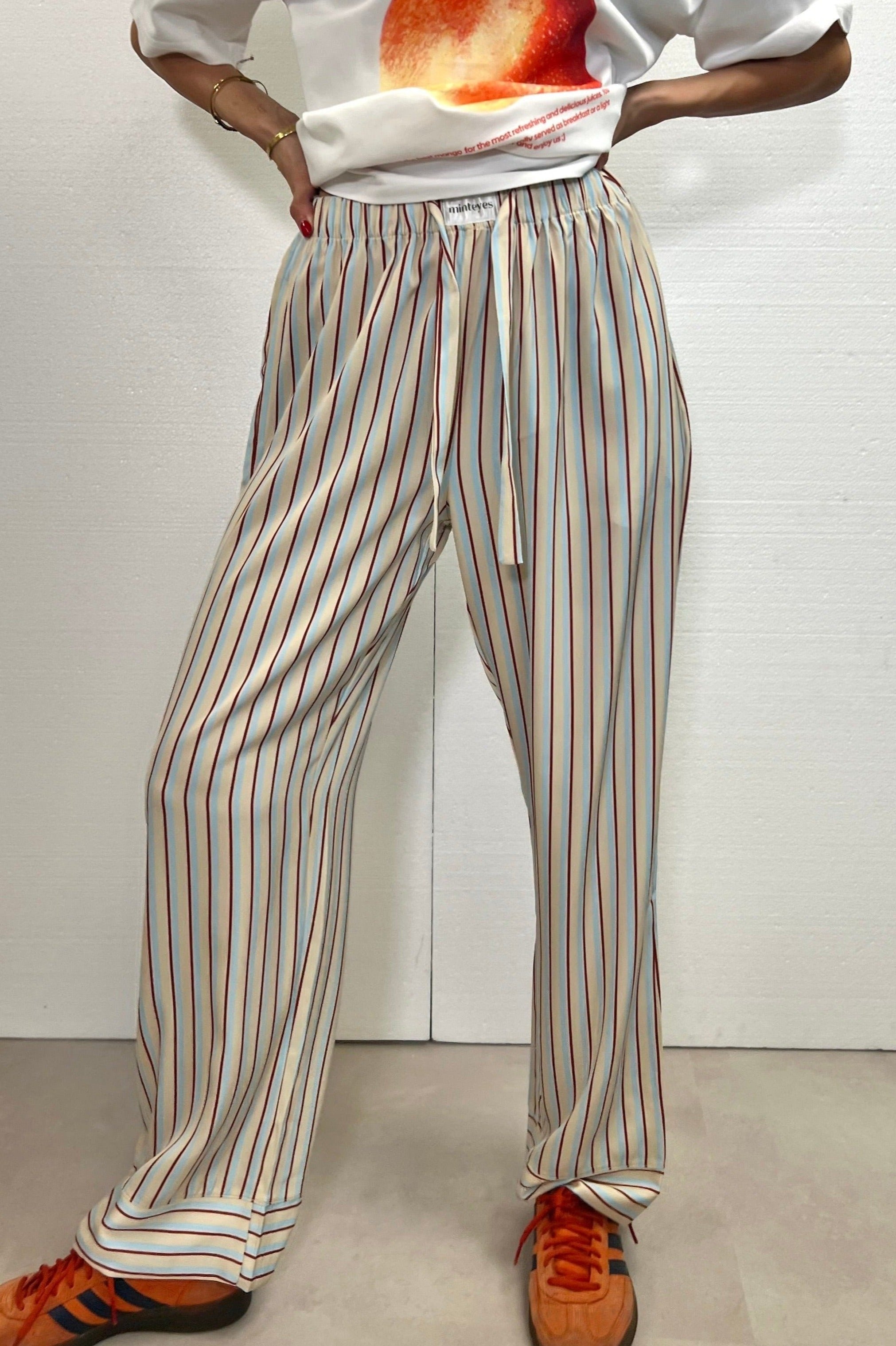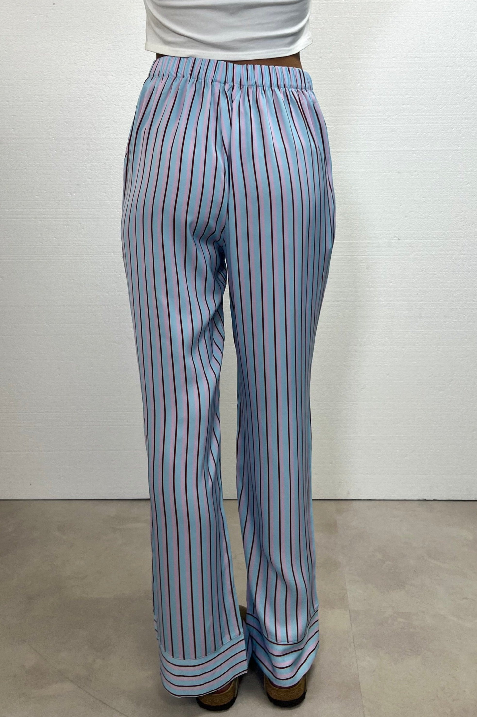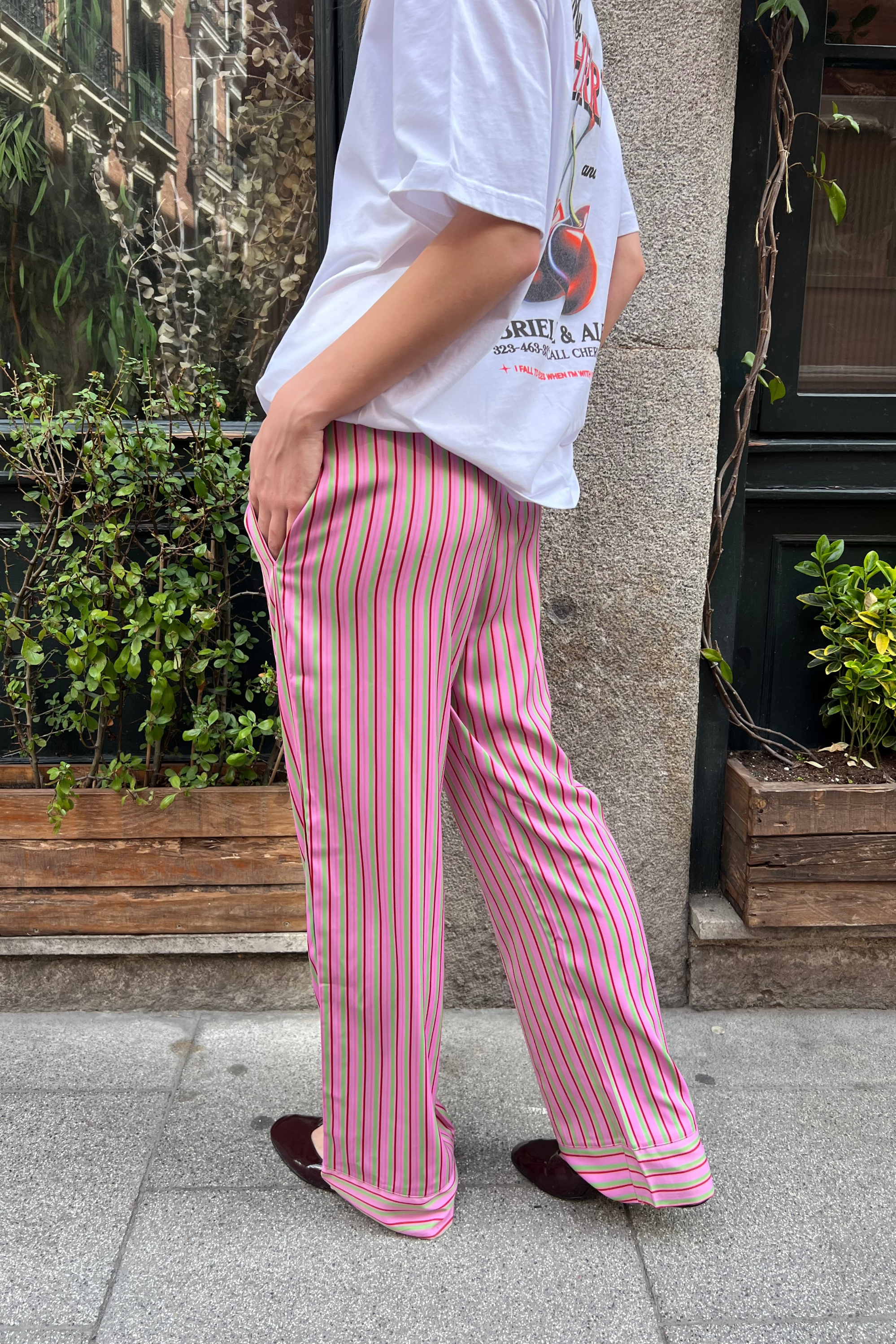 Not just pants. Trending right now. Loose-fitting satin long pants. Designed in Spain and made in with polyester and spandex.